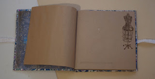 Так как листы в тетради для эскизов были склеены, не рискнула делать форзацы как в блокноте. Думала. могут отвалиться) Поэтому на совесть промазала Моментом Кристаллом. И скрап-бумагу приклеила только к картону. Для наглядности "в резинку" вставила первые попавшиеся пишущие предметы)